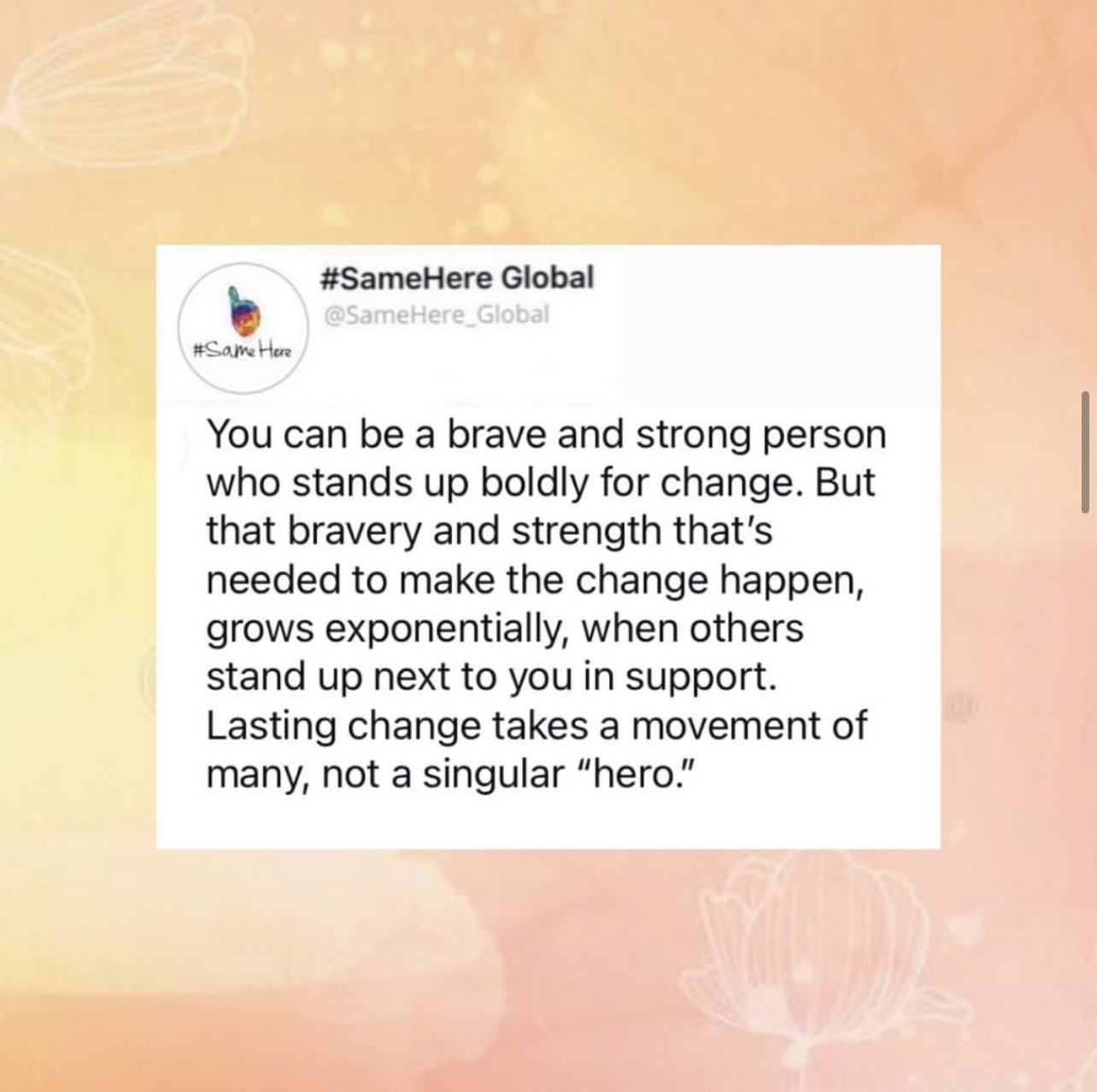 It’s why we put together, & I’m proud we have an alliance – examples from this week alone: Lehner’s SameHere helmet, to the SameHere Scale in Spanish speaking countries, to an Endurance Team proudly wearing the logo/sign on gear. It takes a village – not Celebs on their own. All of us. Let’s all hold hands.